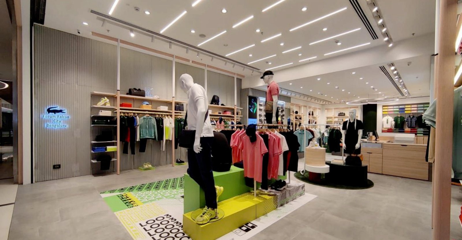 Infini Projects executed the architectural and interior design for Lacoste at Phoenix Mall of Asia, Bengaluru, delivering a refined and immersive retail environment. The store embodies Lacoste’s signature minimalism and premium brand ethos, with a focus on clean lines, elegant materials, and an intuitive layout that enhances the customer shopping experience.